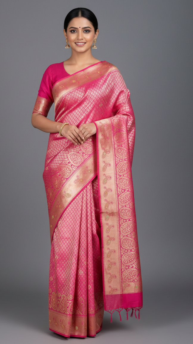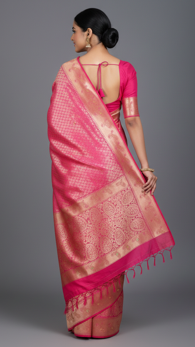 The “Rani Pink” Radiant Zari Saree